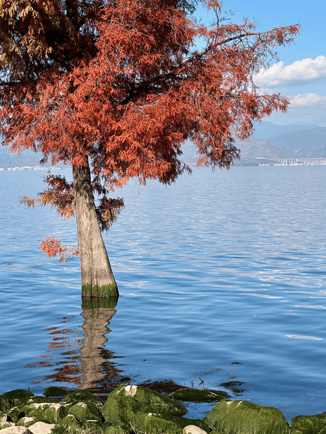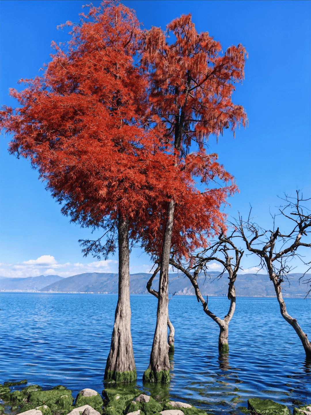 大理的冬天,有一万次心动,藏在洱海的光影摇曳里。冬天的洱海,除了红杉树的绚烂,还有湛蓝的湖水。