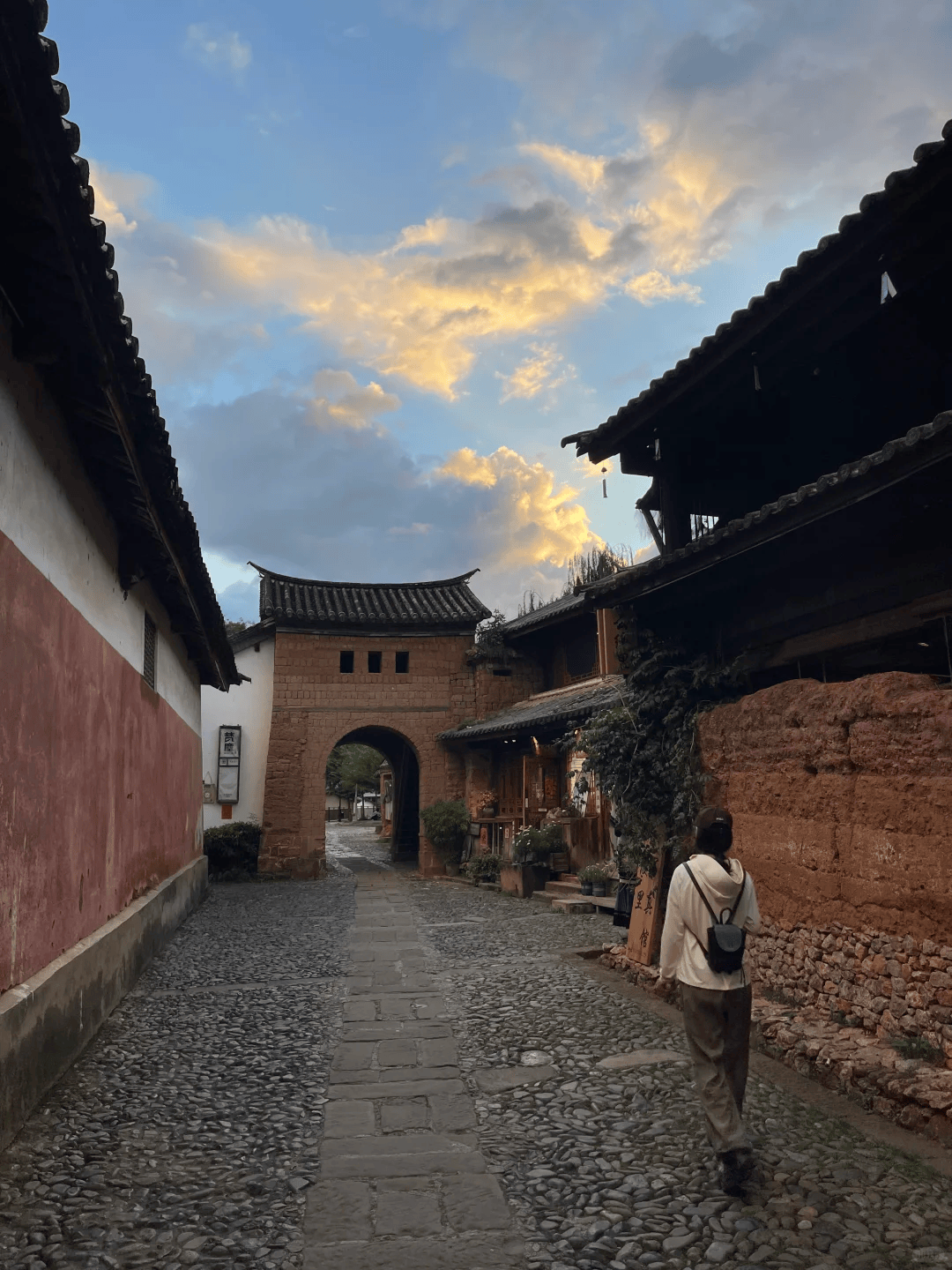 大大小小近80座院落有序分布,凸显着白族建筑的气质,转角楼、东安门还有那一望无际的麦田,美到离谱,让人的心情瞬间明快起来。