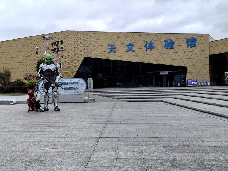 天文体验馆旁边是去天眼观景台的摆渡车乘车点,因为进入天眼观景台区域禁止携带任何电子产品进入,先将手机、数码相机、电子手表等数码产品存入储存箱(免费、自助),再安检后乘车。因为手机不能带,想要在观景台拍照留念的话(30/张),需要准备一点现金在身上。