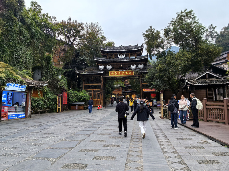 因为时间关系,我们没去陡坡塘,留下一个小小遗憾。陡坡塘瀑布有86版西游记片尾取景地。我们乘观光车回到景区大门,走过一条商业街就出来了。