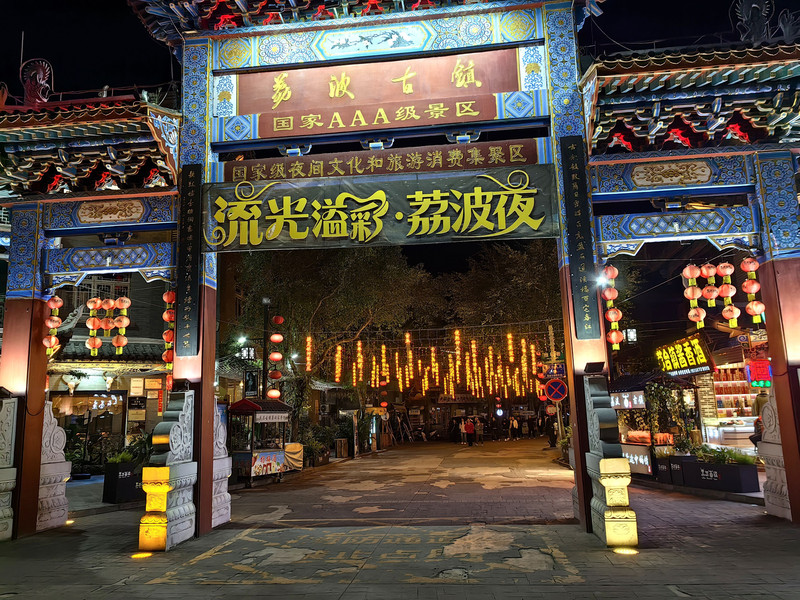 夜景魅力:夜晚灯火阑珊,倒映在舞阳河上,宁静古朴与现代光影交融,别有韵味。