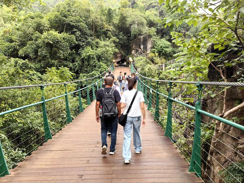 第一站:天星桥,三个景区中最大的景区,分为上半程和下半程。因不少游记说上半程景色一般,为节省体力,直接走下半程。观光车到达下车点后,不从游客大门进,从左手边,可以看见楼梯,从楼梯往上走,这时候你会发现和别人是逆向的(因为这里是出口,游玩回来的人们从这里出来)。