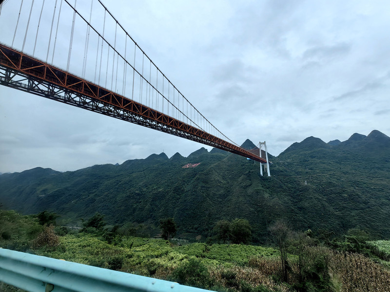 车开到大桥地下,有一个电梯可上大桥,是供在大桥上蹦极用的,由于角度不好,无法拍到大桥横跨两岸的全景。游览后,乘车返回贵阳。