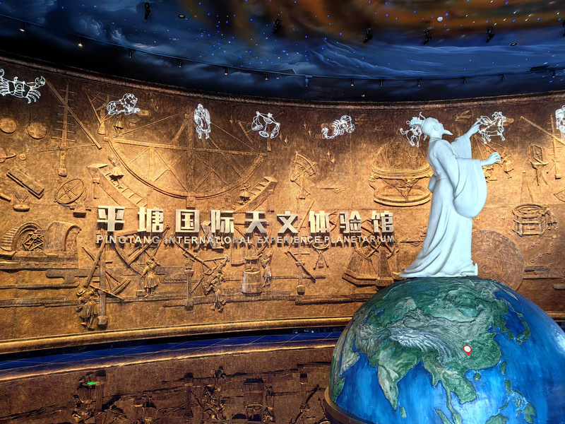 天眼科普基地在平塘县克度镇南边,修建有天文体验馆、天象影院、南仁东纪念馆等建筑,前往天眼参观在此处乘摆渡车。在这些建筑南面,建有几条小街,里面全是饭店、民宿,供前来参观的游客吃住,我们就住在民宿区里。