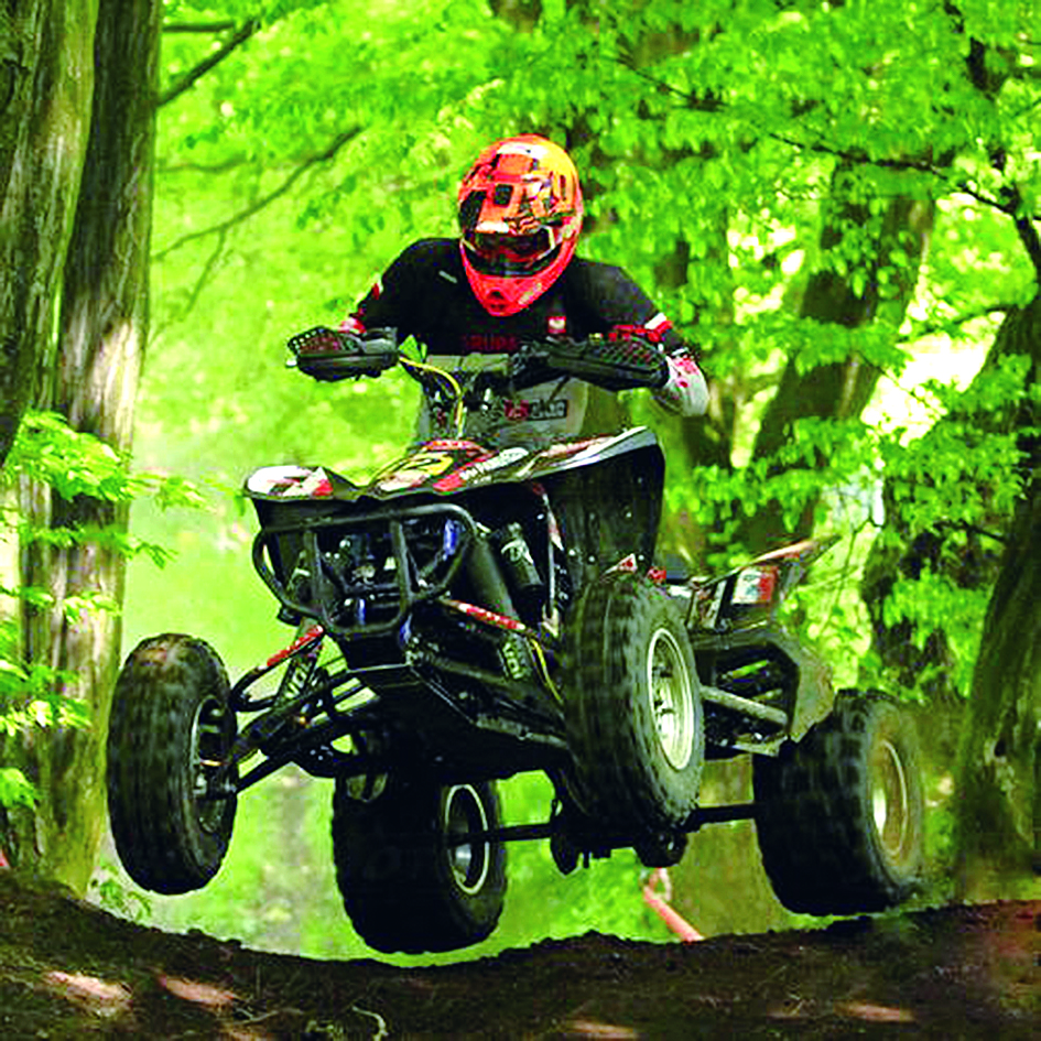 我发动摩托后又骑3圈,自然比开始的时候顺溜多了。小老板见此大手一挥,恩准了!我们父子俩一人一辆摩托车,按次序随着一个教练带领的二三十人的摩托队伍,浩浩荡荡,一溜烟地在丛林里的土路上狂奔。